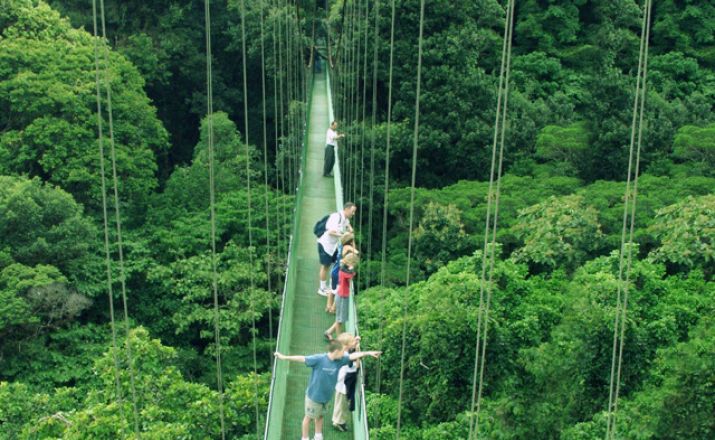 Am Nachmittag geht es zu den Selvatura Hängebrücken. Das Privatreservat Selvatura hat einen enormen Stellenwert im Nebelwald von Monteverde, den Sie während einer 1,5- bis 2-stündigen Wanderung auf den insgesamt etwa 3 km langen Pfaden selbst kennenlernen werden. Der Weg führt dabei über 8 zwischen 50 und 170 m lange Hängebrücken, die sich in 12 bis 60 m Höhe über dem Boden befinden. Die Tour beinhaltet den Transfer ab/bis Hotel und den Eintritt. Die Wanderung können Sie eigenständig machen.